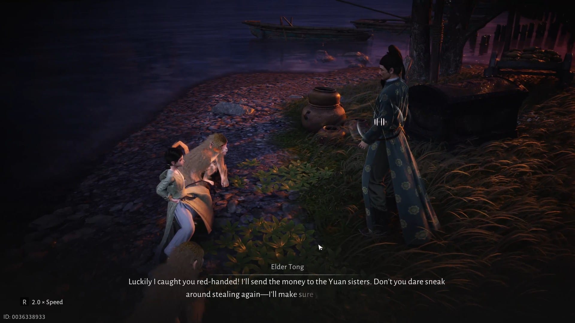 Overhear the conversation between the little girl and her grandfather, Elder Tong. This completes the encounter chapter Little Shadow of Moonveil.