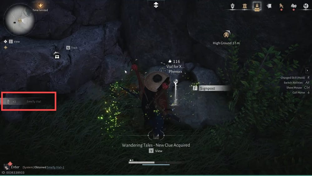 3 - Smelly Vial location: on the rocky ledge with a bear west of Crimson Cliff