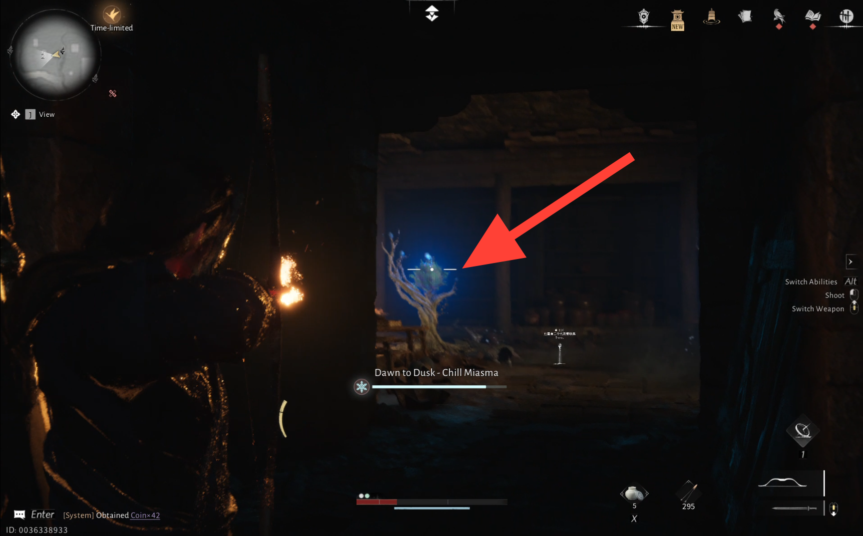 Defeat all the enemies inside, and be sure to shoot the Dawn to Dusk – Chill Miasma Flowers with fire arrows to avoid taking heavy damage.