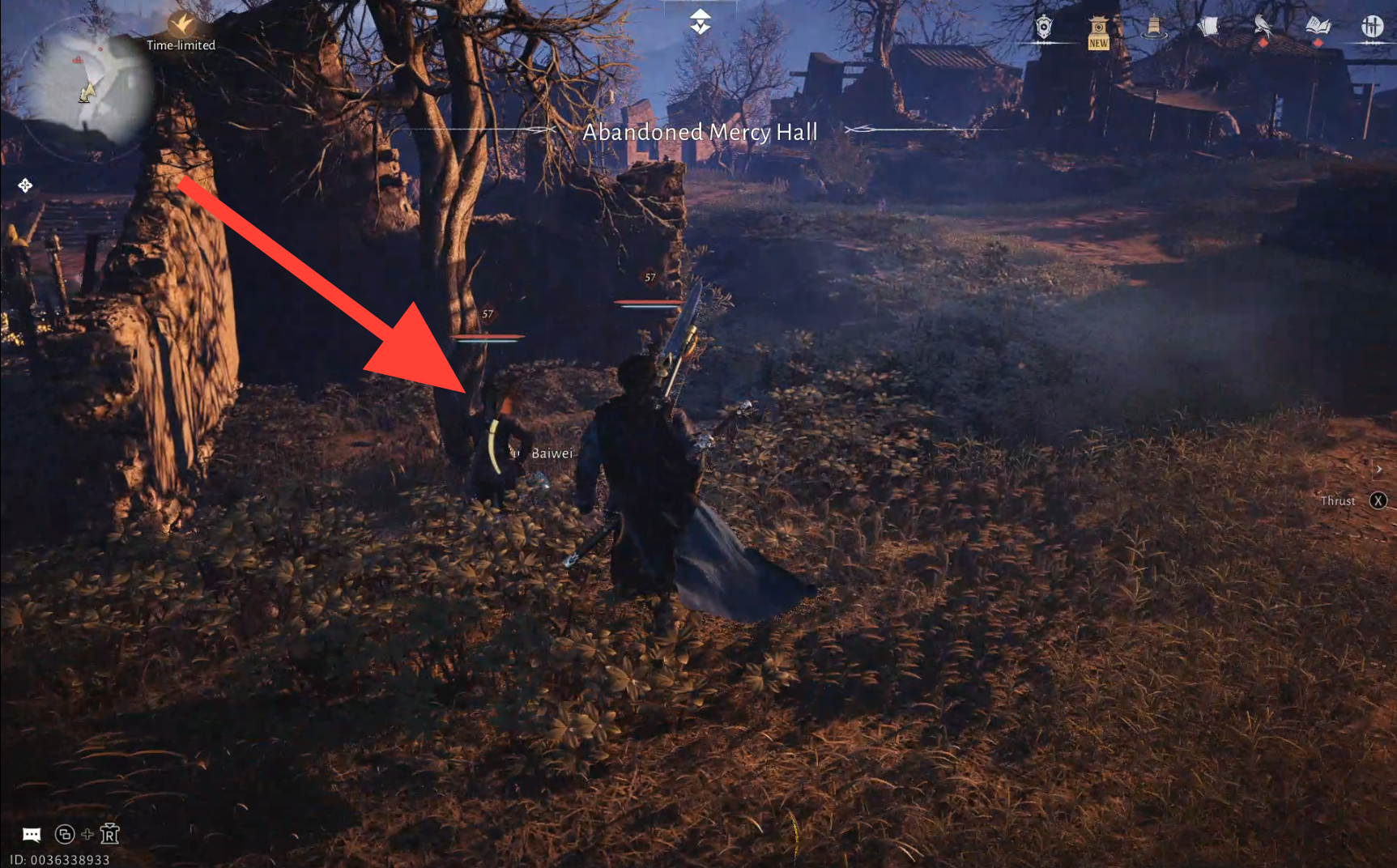 To begin this Wandering Tale, head to the marked spot right next to the Mercy Hall Boundary Stone, defeat the thugs harassing Yue Baiwei, and then speak with her to start the tale.