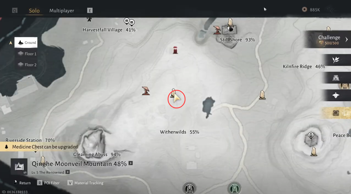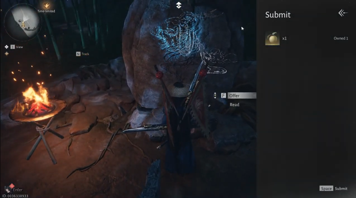 Approach the area where a sleeping deer lies at the center of several mysterious altars. Interacting with this site automatically triggers the Wandering Tale