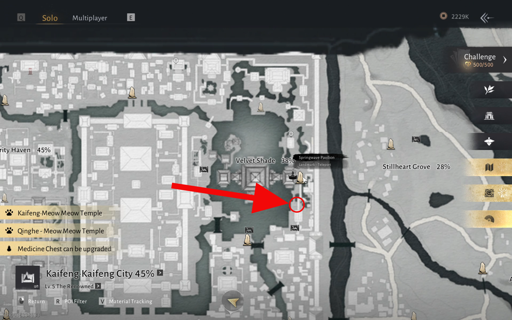 To start this Wandering Tale, head to the marked location in Velvet Shade, Kaifeng City, near the Springwave Pavilion Boundary Stone, and speak with Zhang Shuya, who is standing with Zhang Shurui.