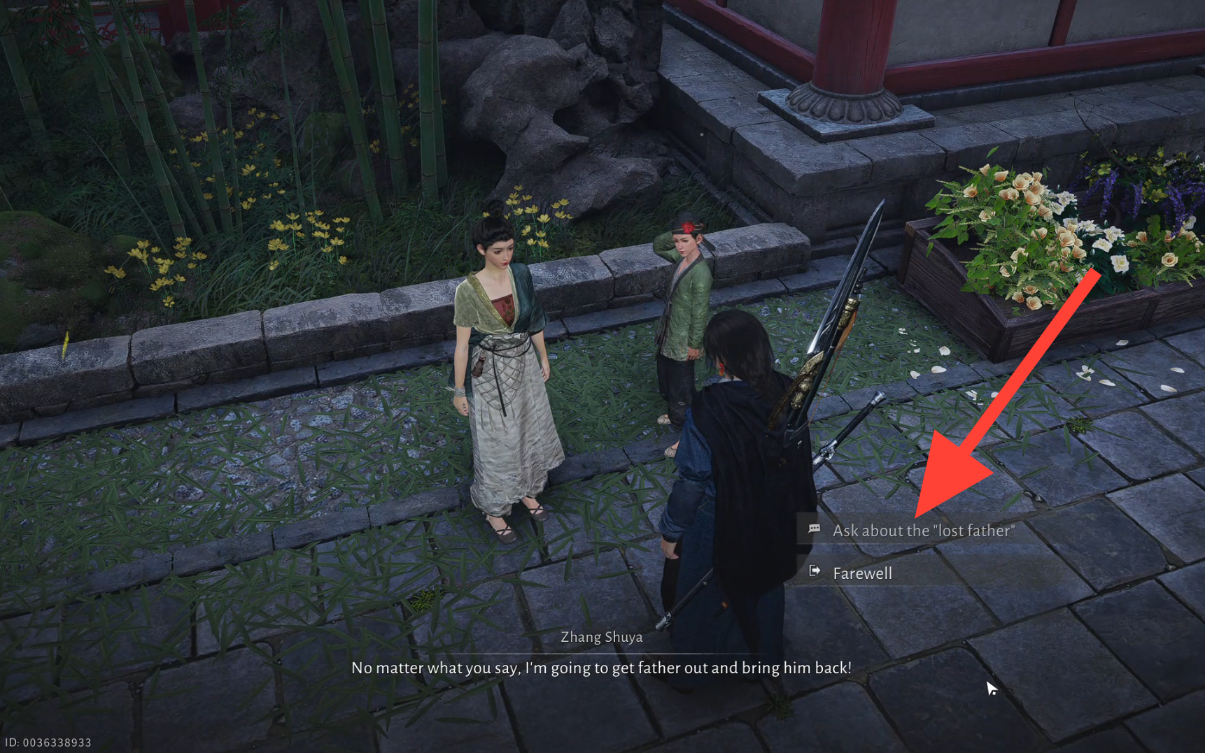 Speak with Zhang Le’an, who is hiding behind the bamboos just behind Zhang Shuya.