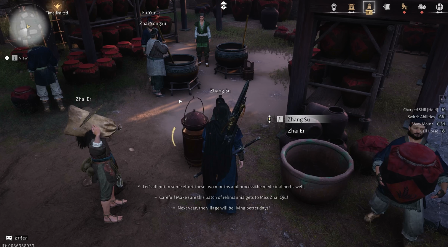 This tale begins at the Herb Hall in Apricot Village. Speak to Zhang Su as he tells you his carefully prepared herb sachet has gone missing.