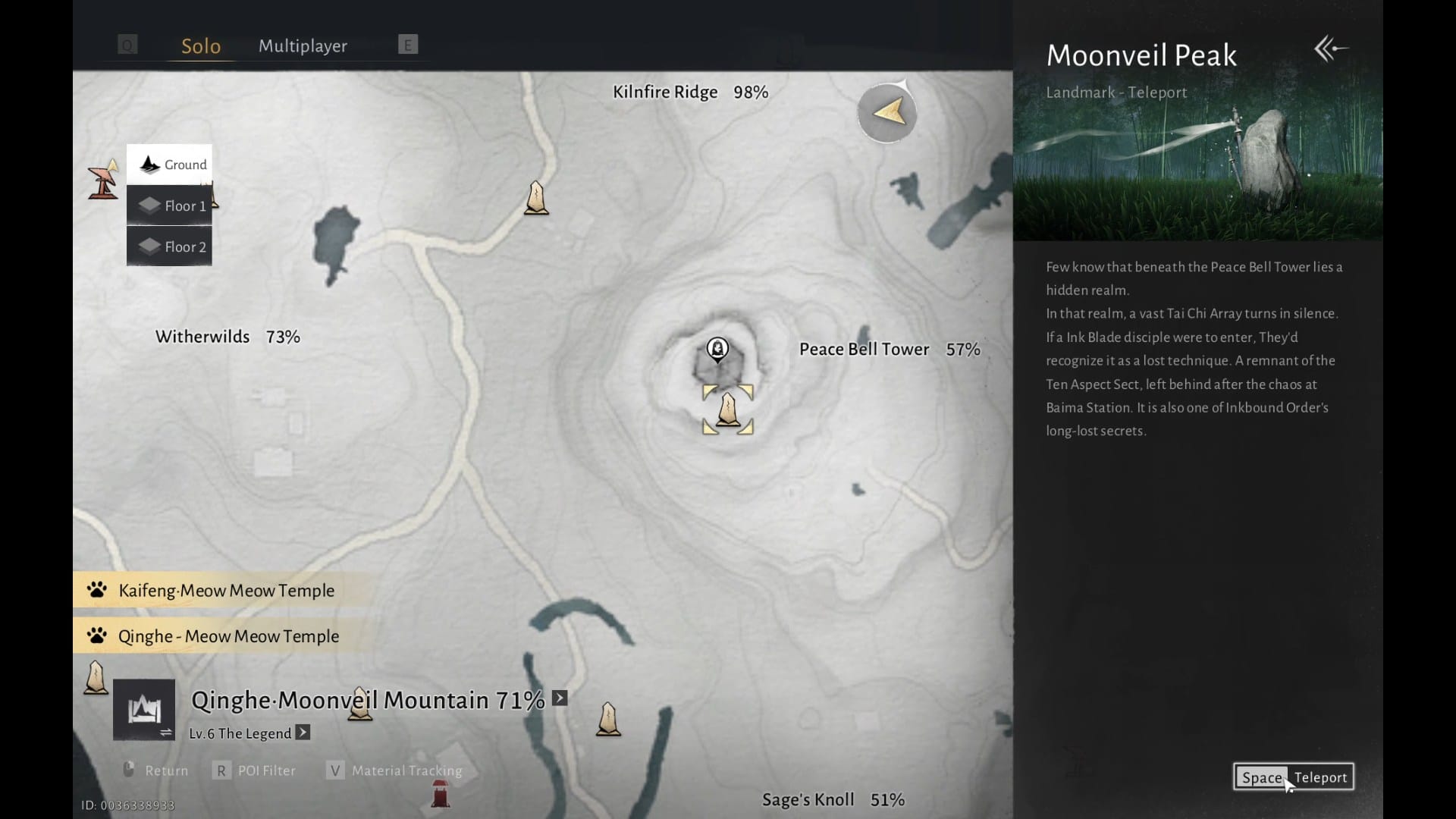 Navigate to the Peace Bell Tower in Qinghe, Moonveil Mountain. The nearest teleport waypoint is Moonveil Peak.