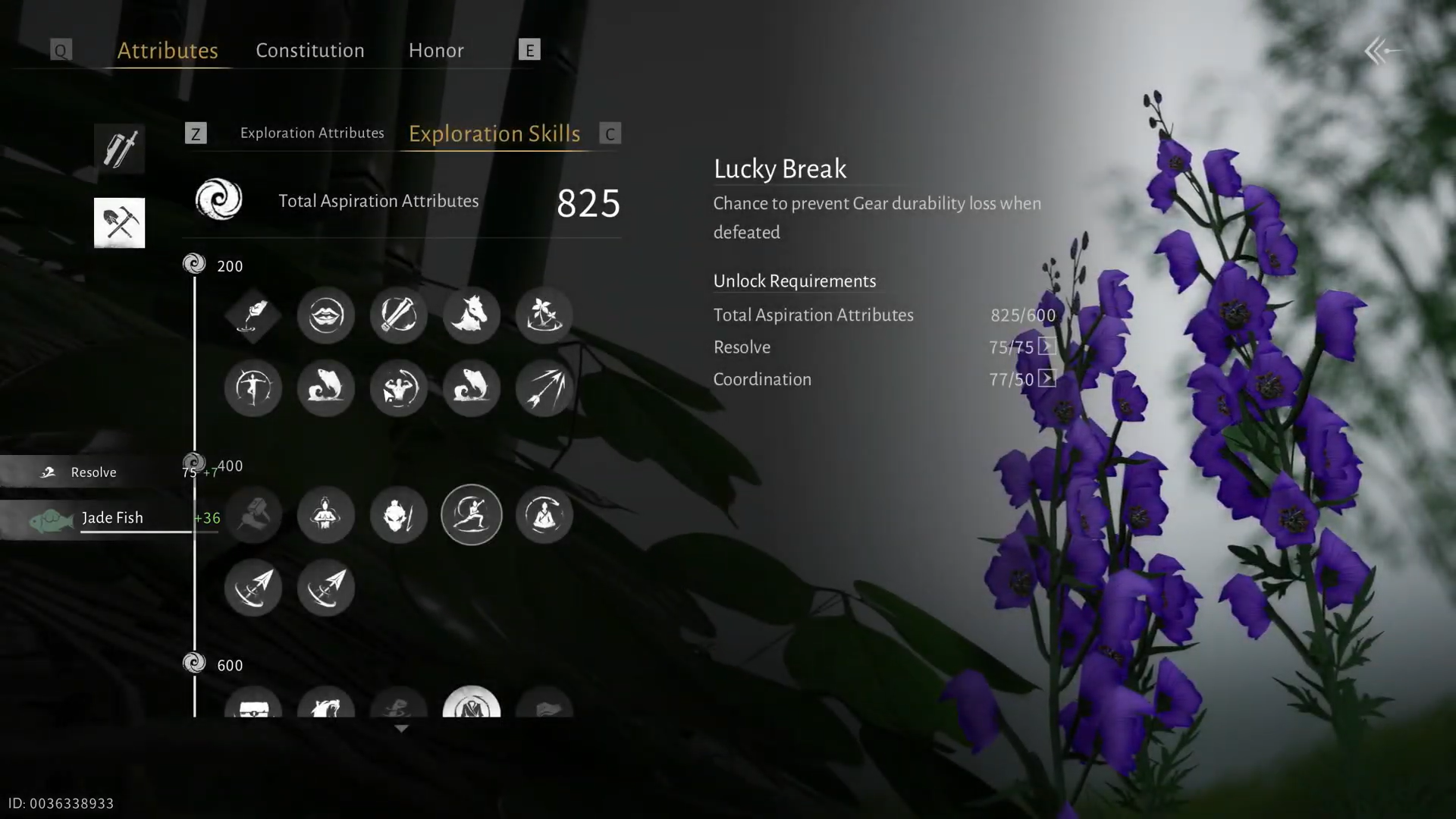 Lucky Break sits on the Exploration Skills grid within the Attributes menu. You’ll unlock it once you meet all attribute thresholds.