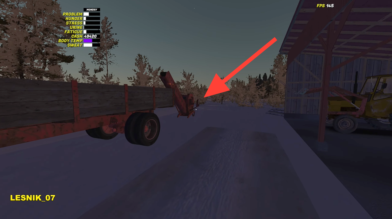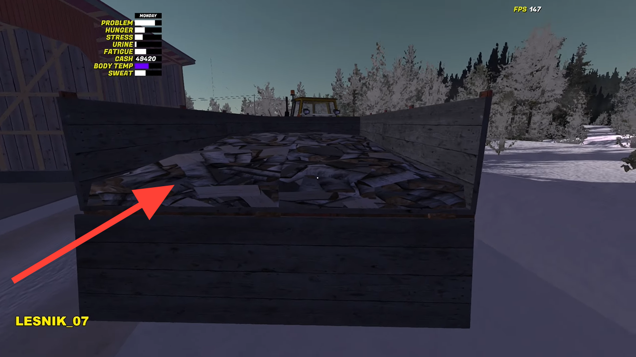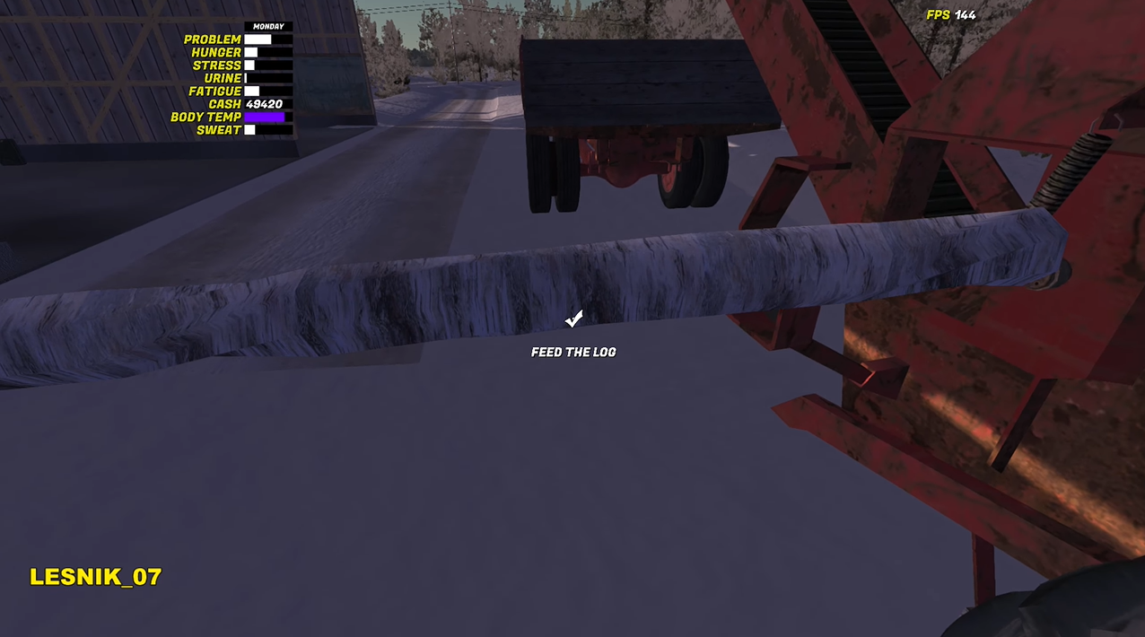 The lumber conveyor in My Winter Car makes splitting firewood easy when connected to the Kekmet tractor. Simply position the tractor, attach the PTO, and keep feeding logs to quickly produce firewood for heating or jobs.