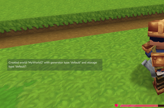 You will receive a confirmation message once the world is created with the default generator and storage types.