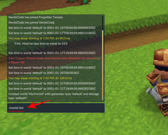 /worldchat commands. - Use the command