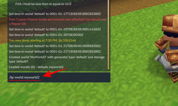 /tp world [name]command. - Successfully switching worlds triggers a brief loading screen before spawning you into the new environment.