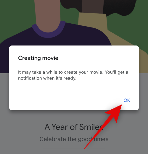 Google will now create a recap video for you automatically. This can take some time, depending on the number of photos available on your device. Tap OK.