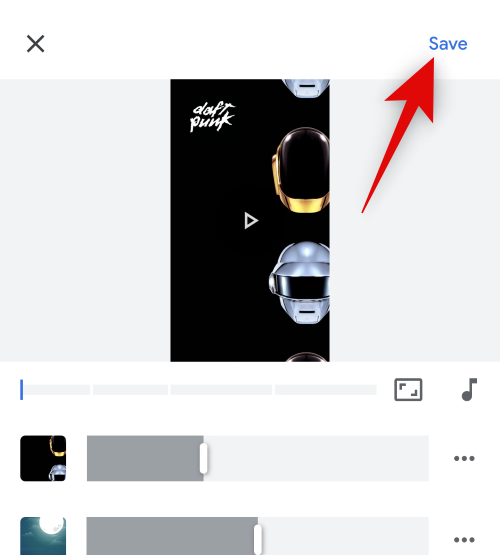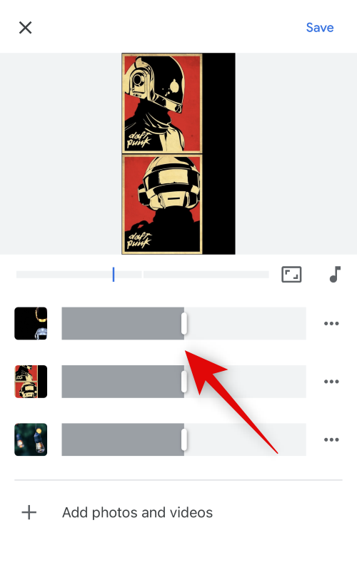 You can also tap + Add photos and videos at the bottom to add more media items at the end of all your currently added clips.