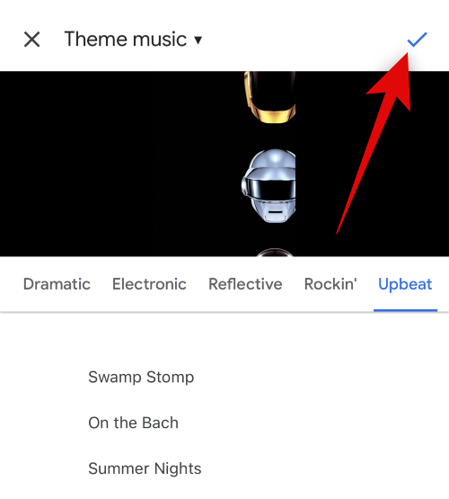 Tap the Checkmark in the top right corner once you’ve found the music you prefer.