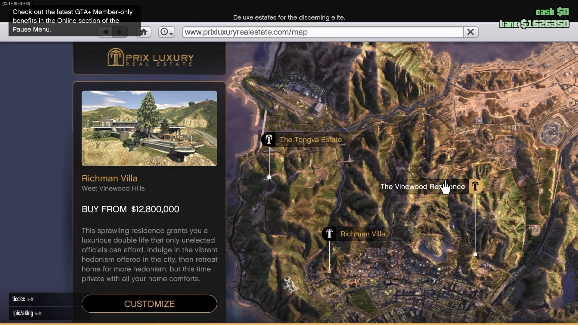 - The Safehouse in the Hills update adds three purchasable mansions: Vinewood Residence, Tongva Estate, and Richman Villa.
