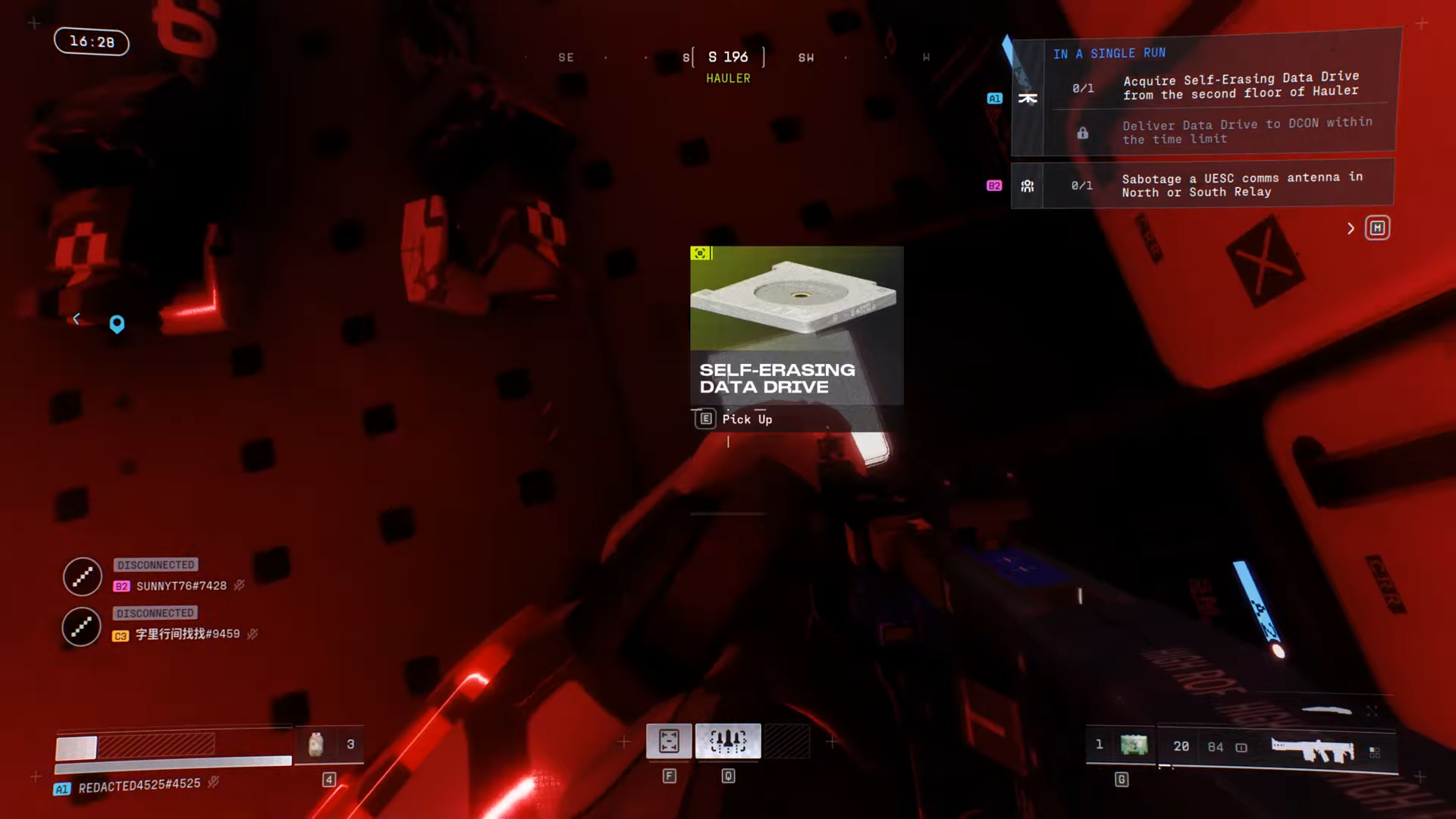 Interact to access the DCON inventory, then drag the Self-Erasing Data Drive from your inventory into it to finish the quest successfully before the time runs out.