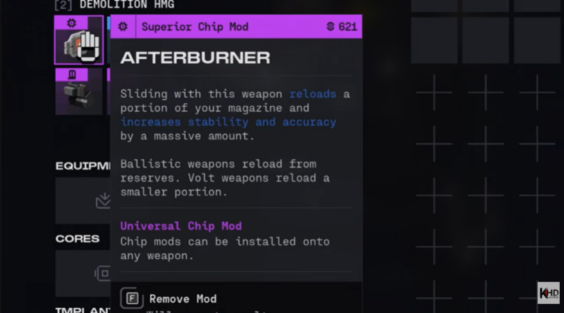 Chip mods function similarly to perk systems seen in other modern shooters. They modify weapon behavior in impactful ways.