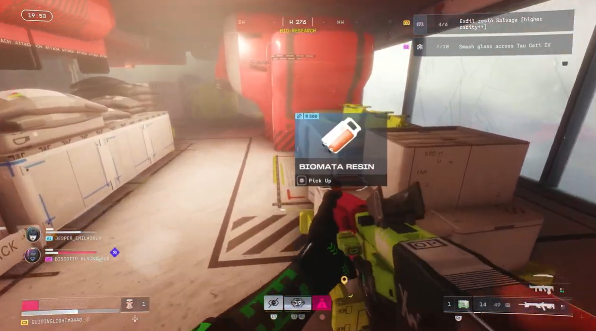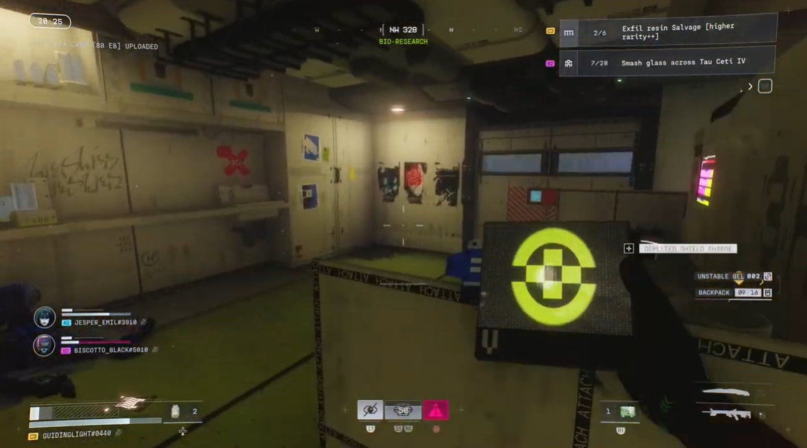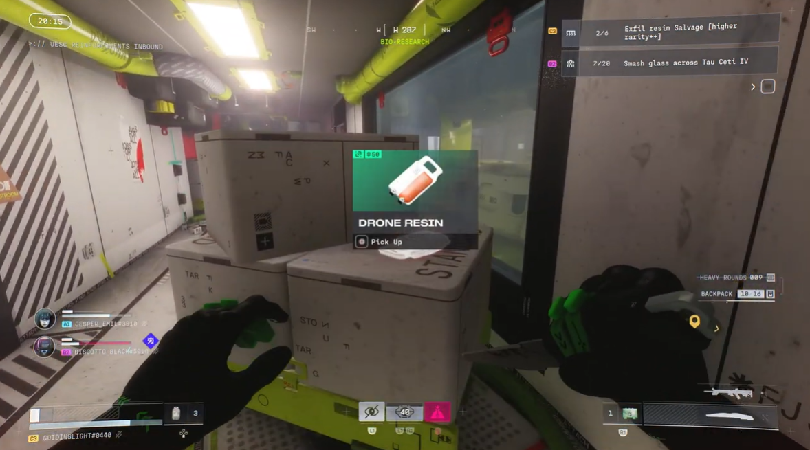 Inside Bio Research, resin most commonly spawns in compact storage areas, stacked white containers, and research carts. You should sweep the facility in a tight loop rather than wandering randomly. Start near the entrance, clear each room methodically, and exit quickly once you’ve secured enough salvage.