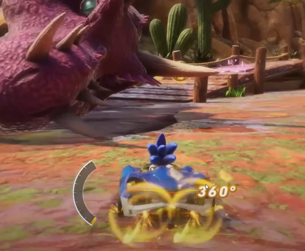 Dinosaur Theme Comparison (left Mario Kart World, right Soni Racing CrossWorlds)