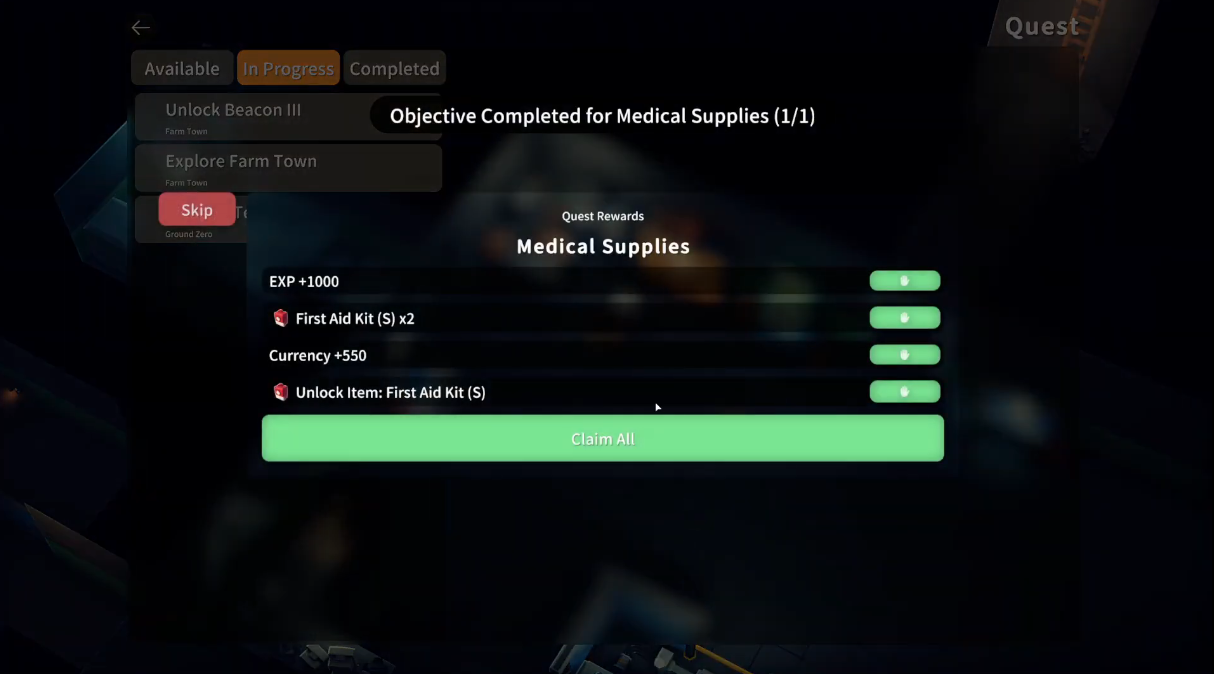 Unlocked after completing Basic Construction: Medical, this quest tasks you with restocking your base’s Medical Station by scavenging essential materials from nearby raid zones or by crafting and purchasing.