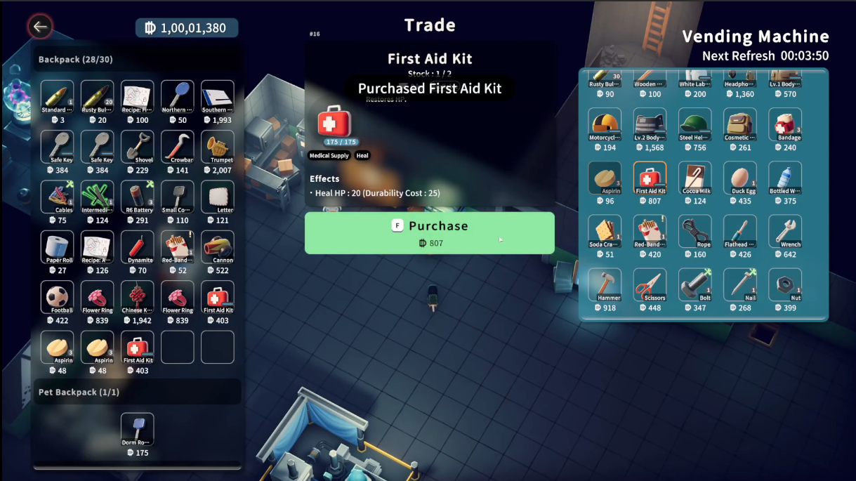 | Unlock Item: First Aid Kit (S) | Adds the small medkit to your Medical Station crafting list |