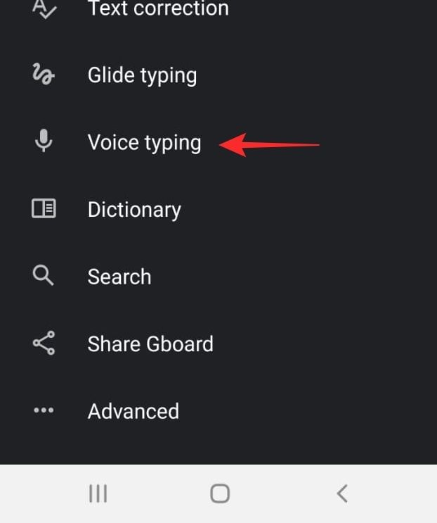 Select Gboard to open the setting for the Gboard app. Go to ‘Voice typing’ and toggle ‘Use voice typing’ on.