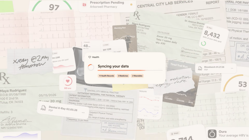 You can import electronic health records, visit summaries, medication lists, and lab test results from healthcare providers. The system currently supports connections with more than 50,000 healthcare organizations and can also integrate data from over 50 wearable devices, including products from Apple, Fitbit, and Oura.