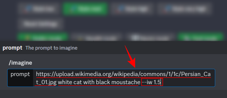 /imagine prompt https://image-web-address.jpg my text prompt --iw 1.5