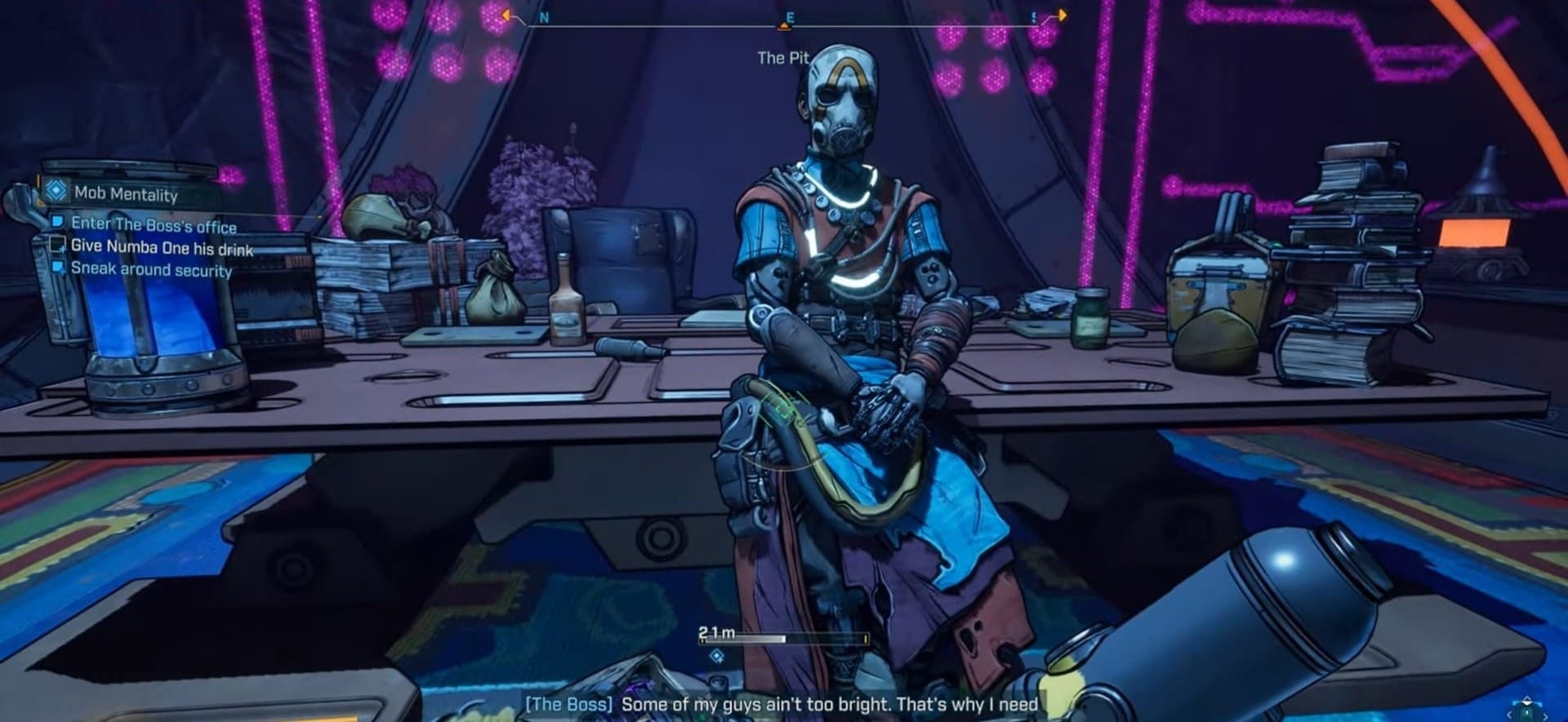 When you first reach The Pit, Numba One blocks your path to The Boss’s office. You can handle this in two different ways: