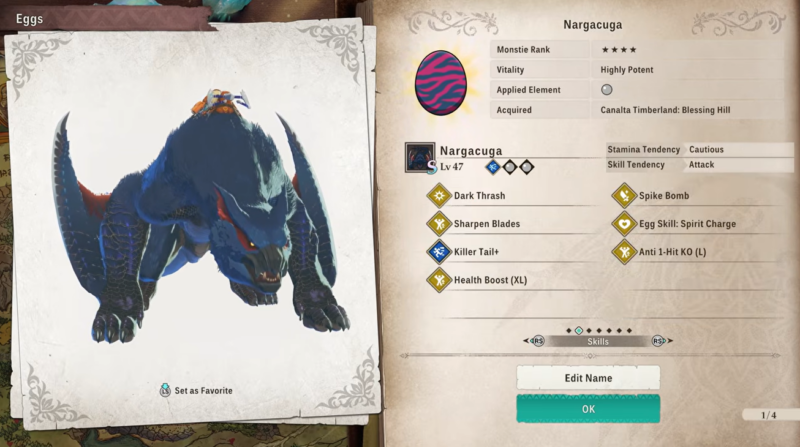 After successfully spawning Silverwind Nargacuga, you may want to farm multiple eggs to obtain better gene combinations. The most efficient way to do this is by reloading the dens using fast travel. Travel to a completely different map or region and then return to Canalta Timberland. Doing this refreshes the monster dens and egg spawns, allowing you to repeat the process quickly without waiting for natural respawns. This technique dramatically speeds up farming and increases the chances of finding rare eggs with stronger genes.
