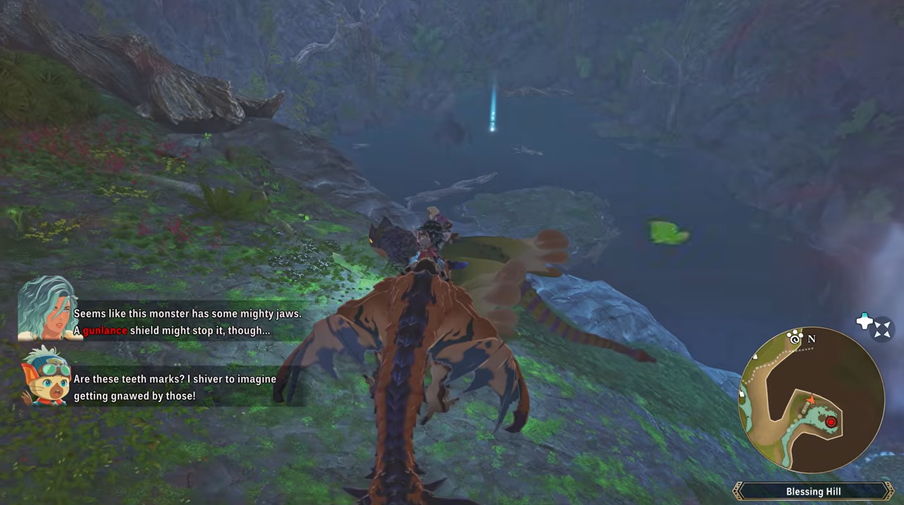 Before heading to Canalta Timberland, you must equip a Gunlance that has the Wyvern’s Fire skill available, because this move is the only reliable way to repel the invasive monster guarding the den. The level of the Gunlance does not matter as much as having the skill ready. It is also recommended that you bring strong monsties capable of surviving the encounter since the invading monster can deal heavy damage before you trigger the repel mechanic. While the fight itself is short, having a balanced party helps ensure you survive long enough to use Wyvern’s Fire successfully.