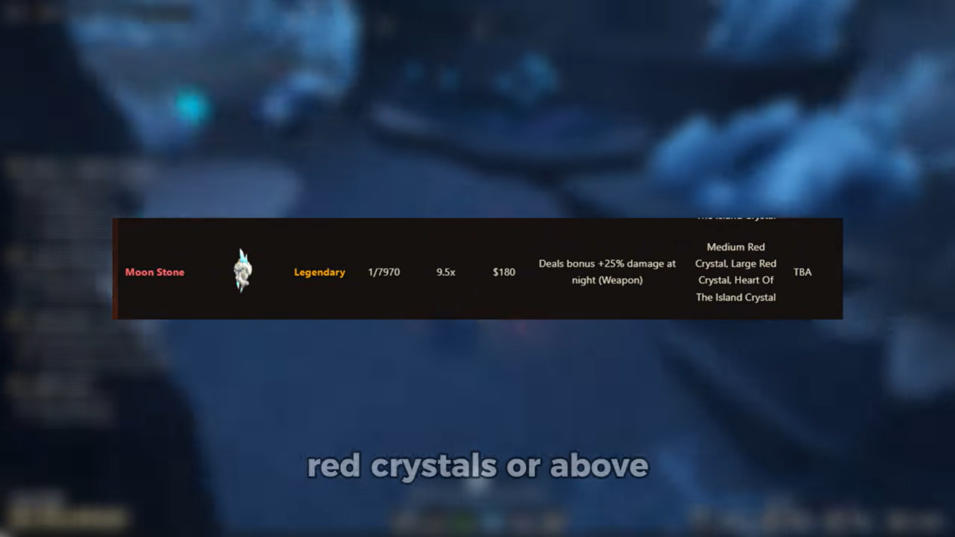 Large Red Crystals and Heart of the Island Stones take longer to mine but offer more hit interactions per node. More hits mean more chances to roll Moon Stone before the node breaks.