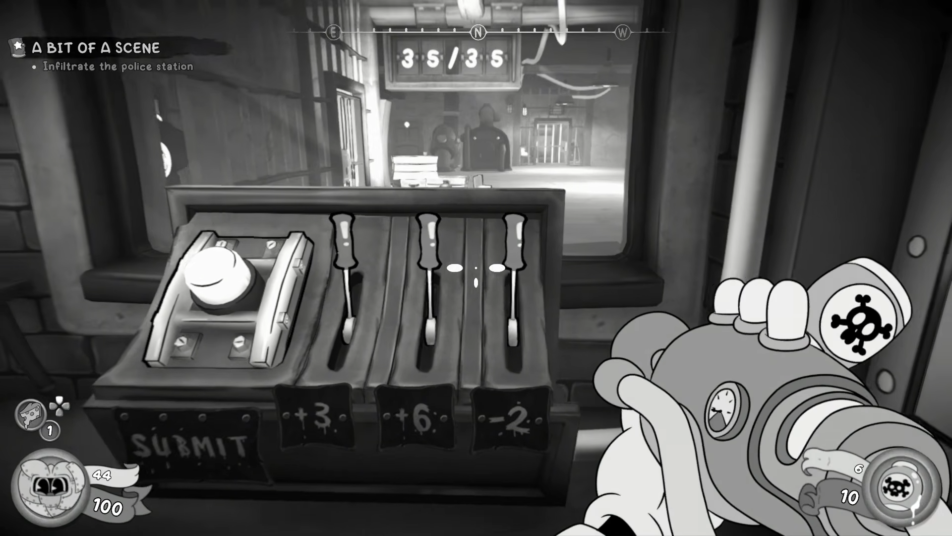 This section covers the exact puzzle flow for the police station area. The core idea is simple: use the levers to make each panel’s total equal the number shown on its screen, then confirm it with the button. Once both panels are activated, the electricity returns and the path forward opens.