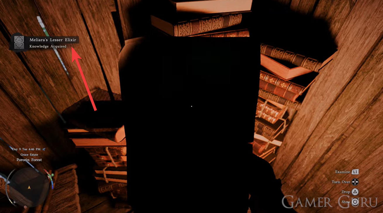 Inside, you’ll find Meliara’s Lesser Elixir Recipe. Make sure to learn it immediately so it gets added to your crafting system.