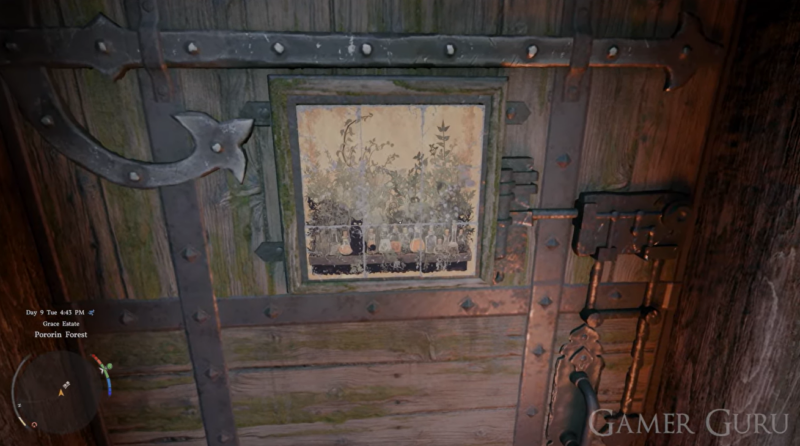 Interact with the second painting puzzle tied to the door. Just like the Strongbox puzzle, align fragments correctly to restore the image.