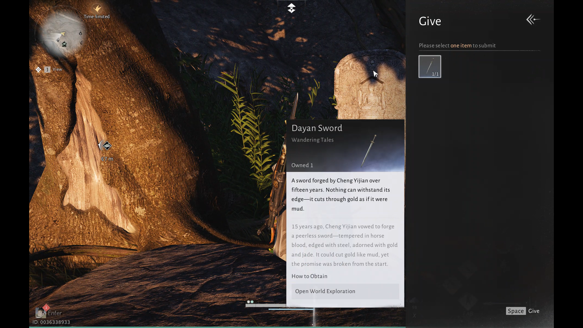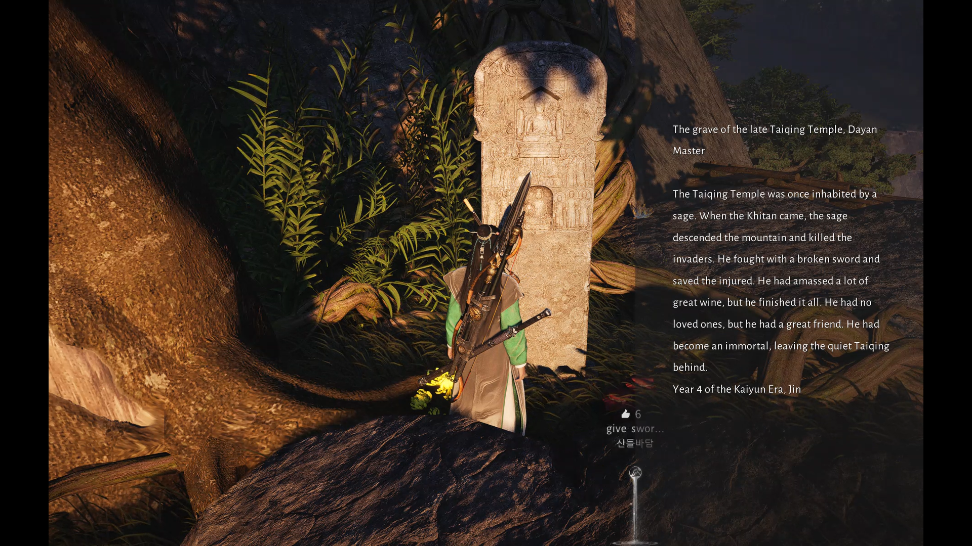 After reading the inscription, you give away your Dayan Sword as an offering.