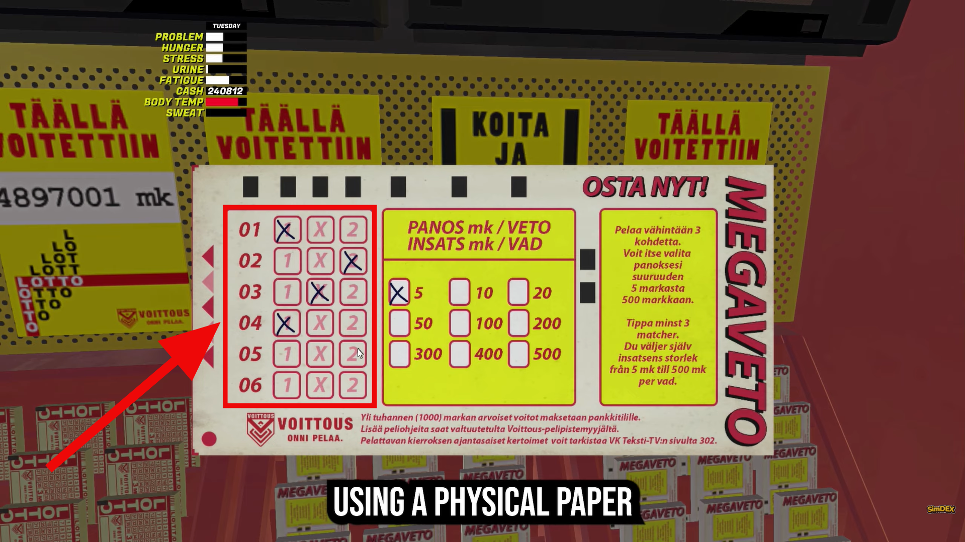 Megaveto in My Winter Car lets you bet on ice hockey matches at the PSK gas station for a chance to earn extra Markka. Using the classic 1‑X‑2 system, you pick match outcomes, manage risk, and can track results via teletext or the booth. With smart selections and careful ticket management, it’s a fun, optional side activity that adds depth to your town visits.