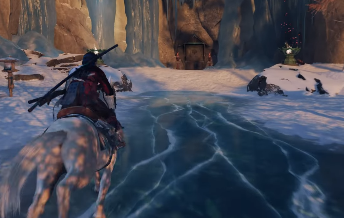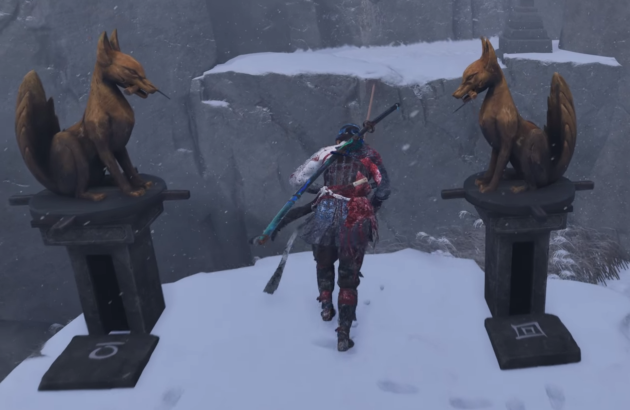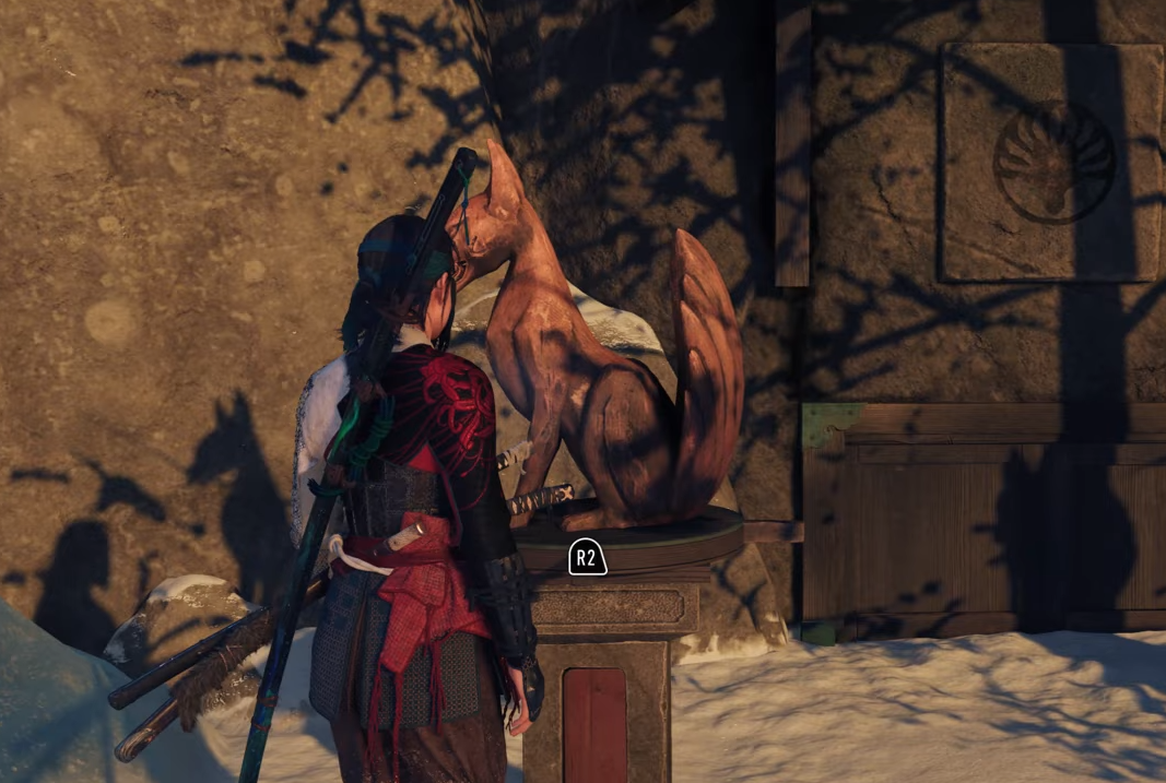| 1 – Outer Entrance Statues | At the frozen cave entrance northwest of Sarobetsu Lake, guarded by two fox statues. | Rotate both statues so they face away from each other. | Opens a crawlspace / grapple point above the entrance, granting access inside. |