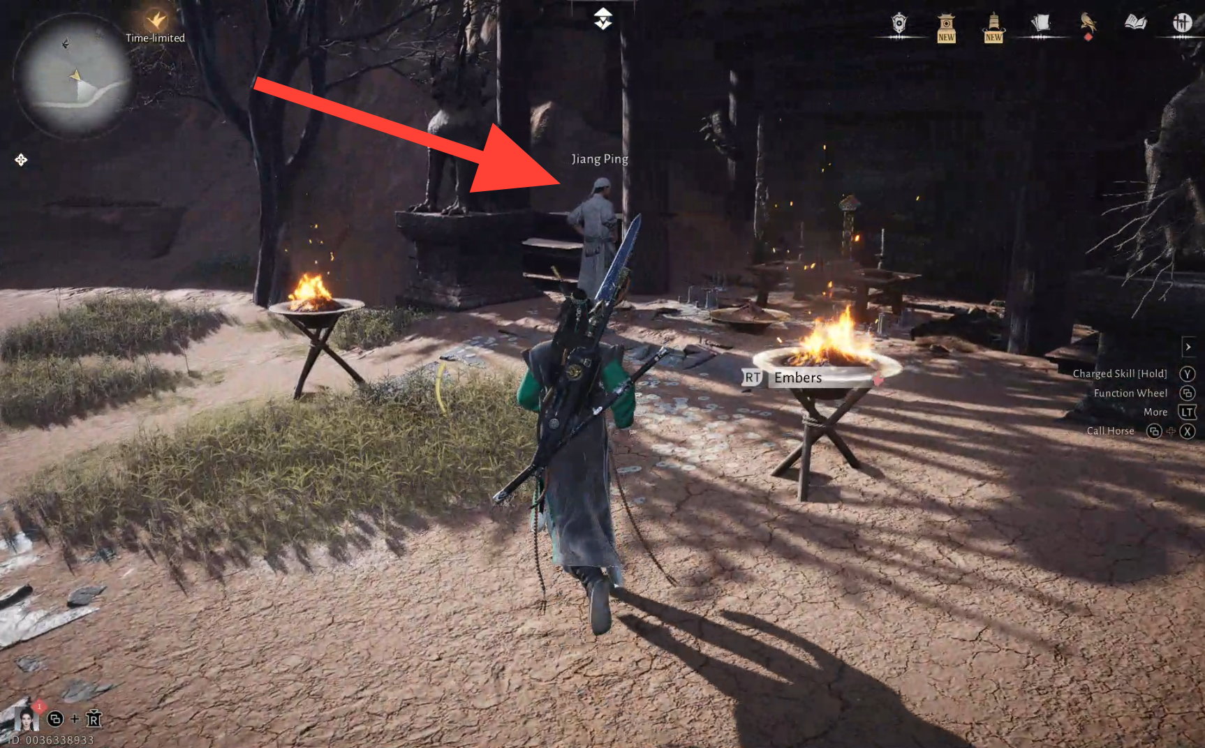After arriving at the marked spot, talk to Jiang Ping to start the tale.