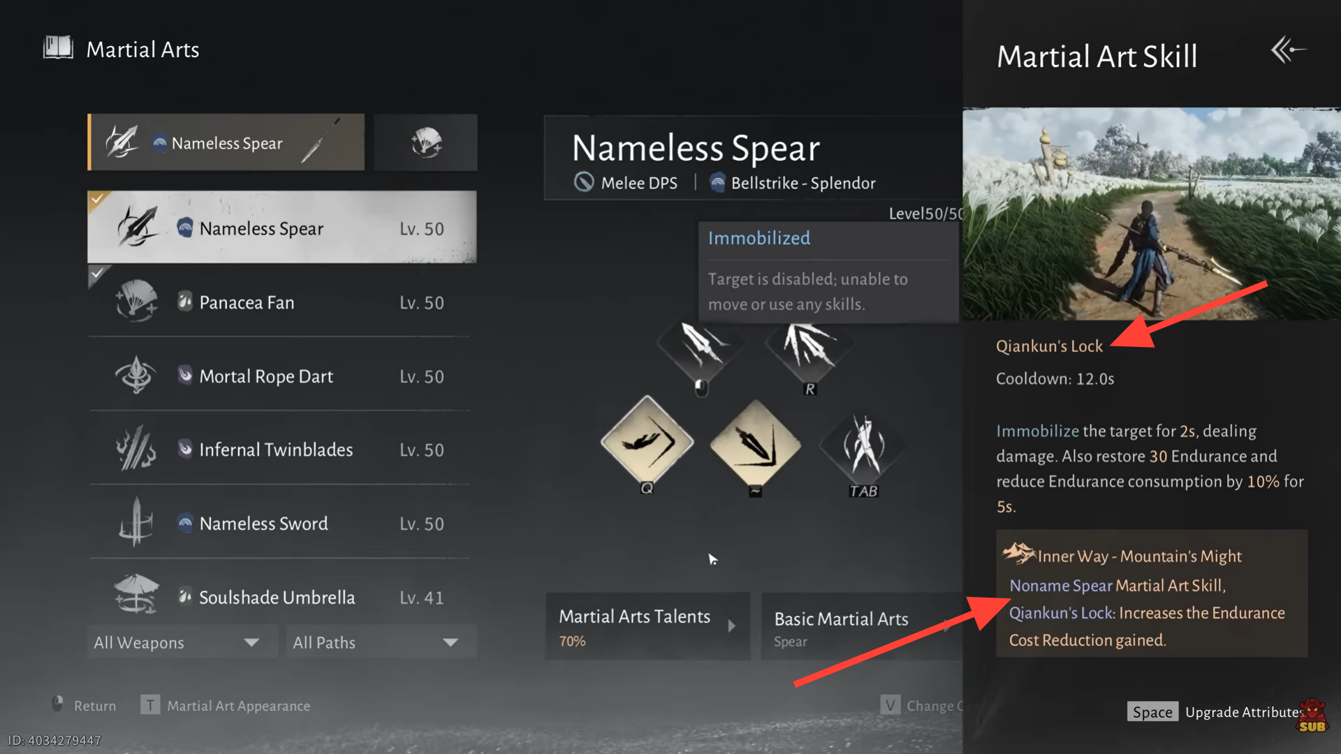 Qiankun’s Lock briefly immobilizes enemies while restoring endurance. This skill enables sustained offense and creates safe openings for charged attacks. Unlocked by default