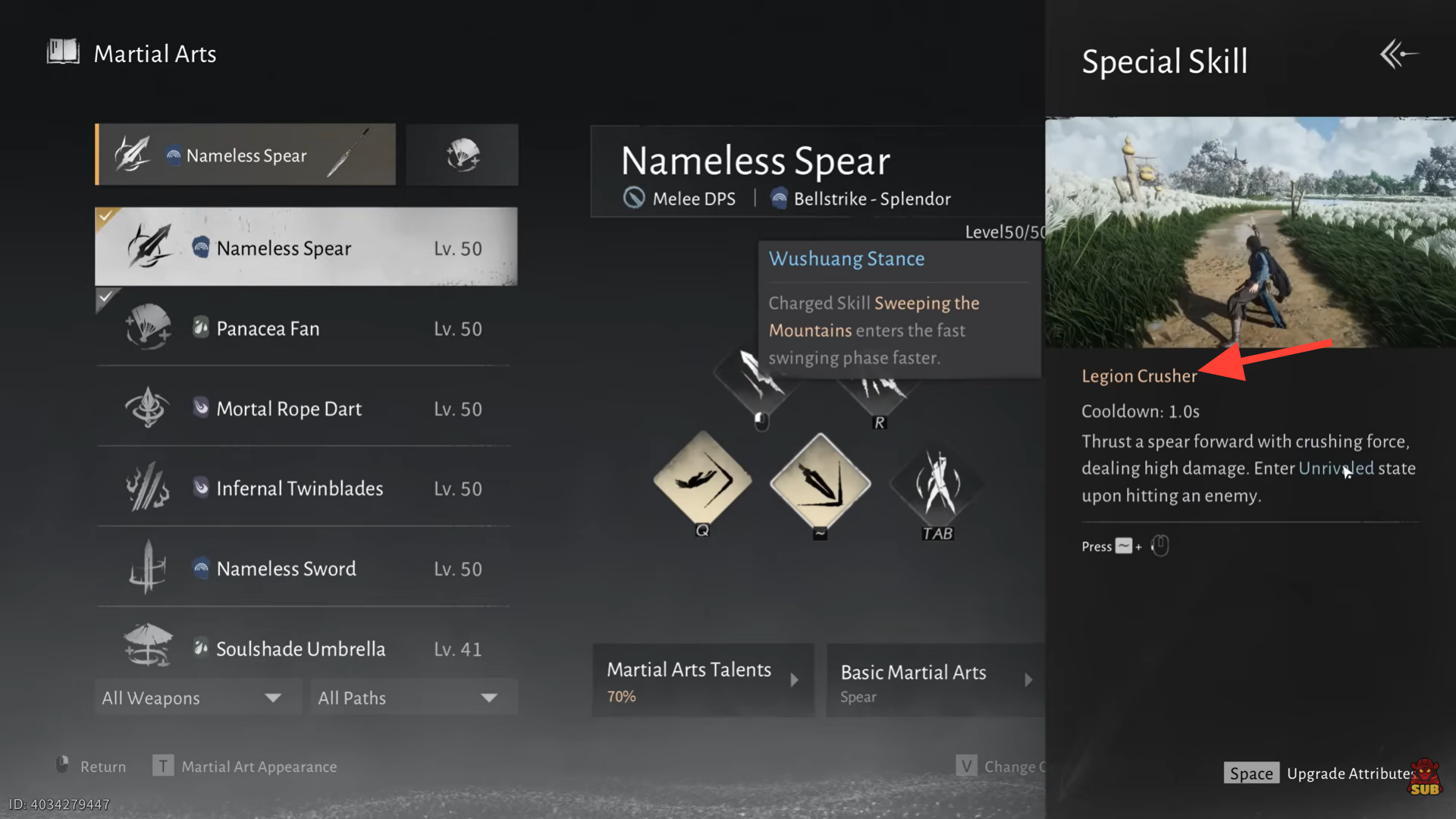 - Legion Crusher is a Special Skill and can be unlocked after activating the Blade Out Basic Talent 8th node.