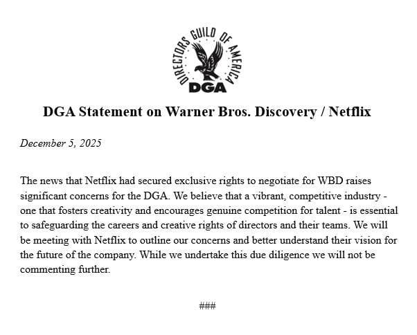 - Backlash against Netflix-WBD deal continues, as Hollywood Unions and guilds call for 'blocking' the merger.
