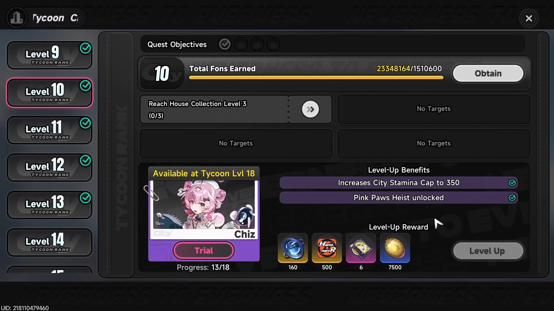 City Tycoon Funds, properties, city stamina, unlocks One of the main early-game priorities.