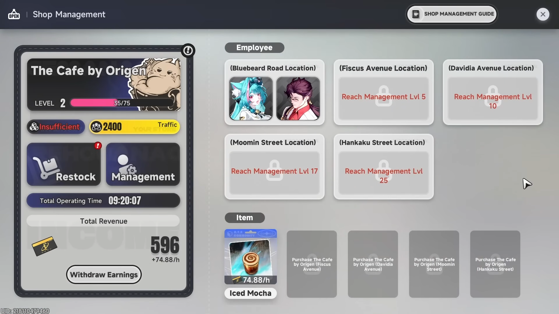 You can increase management level, unlock more cafes, research menu items, restock ingredients, and assign characters to work there, all of which improve profit.