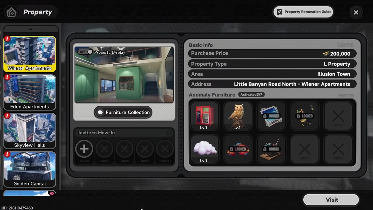 Some pieces are tied to specific tasks such as defeating anomalies or taking pictures, and properties also let you invite characters once their affinity reaches level four.