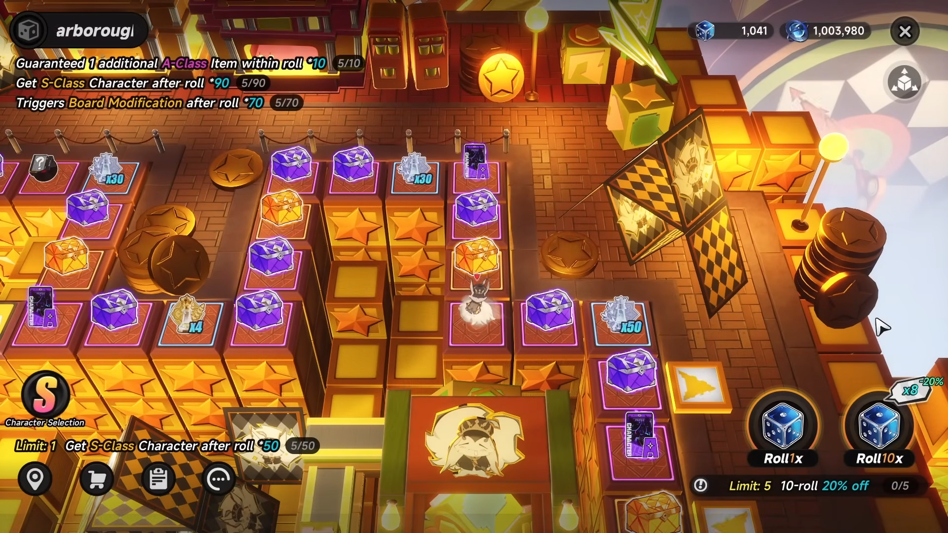 The gacha system uses different dice for standard and limited banners, and the limited banner has no 50/50 loss if you pull the featured S-rank unit. Character pity is 70 for guaranteed S-rank and 90 for hard pity, with a guaranteed A-rank every 10 pulls.