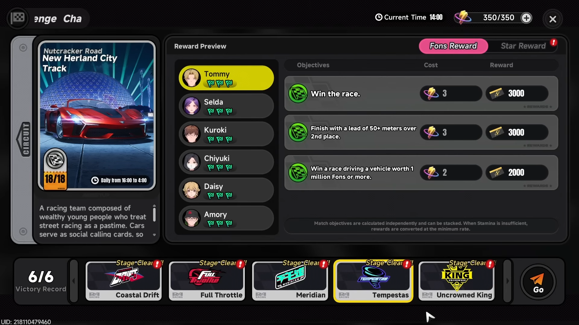 Racing is one of the direct fund sources in the tycoon system, with challenge races giving funds and premium currency rewards.