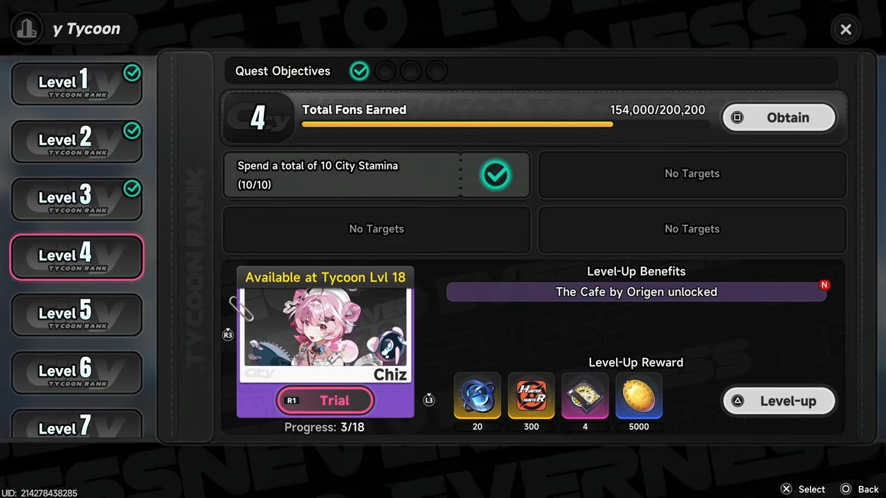 Regularly participating in these activities ensures a steady income of fons, which becomes increasingly important as you climb to higher Tycoon levels.
