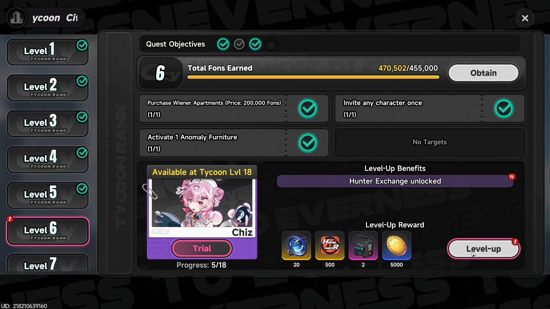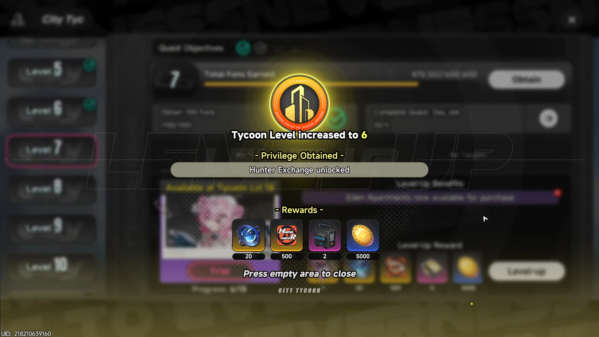 The exact trigger is usually tied to reaching Hunter level 18–21 and unlocking the Tycoon panel, which lists apartment‑purchase and invite‑related tasks.