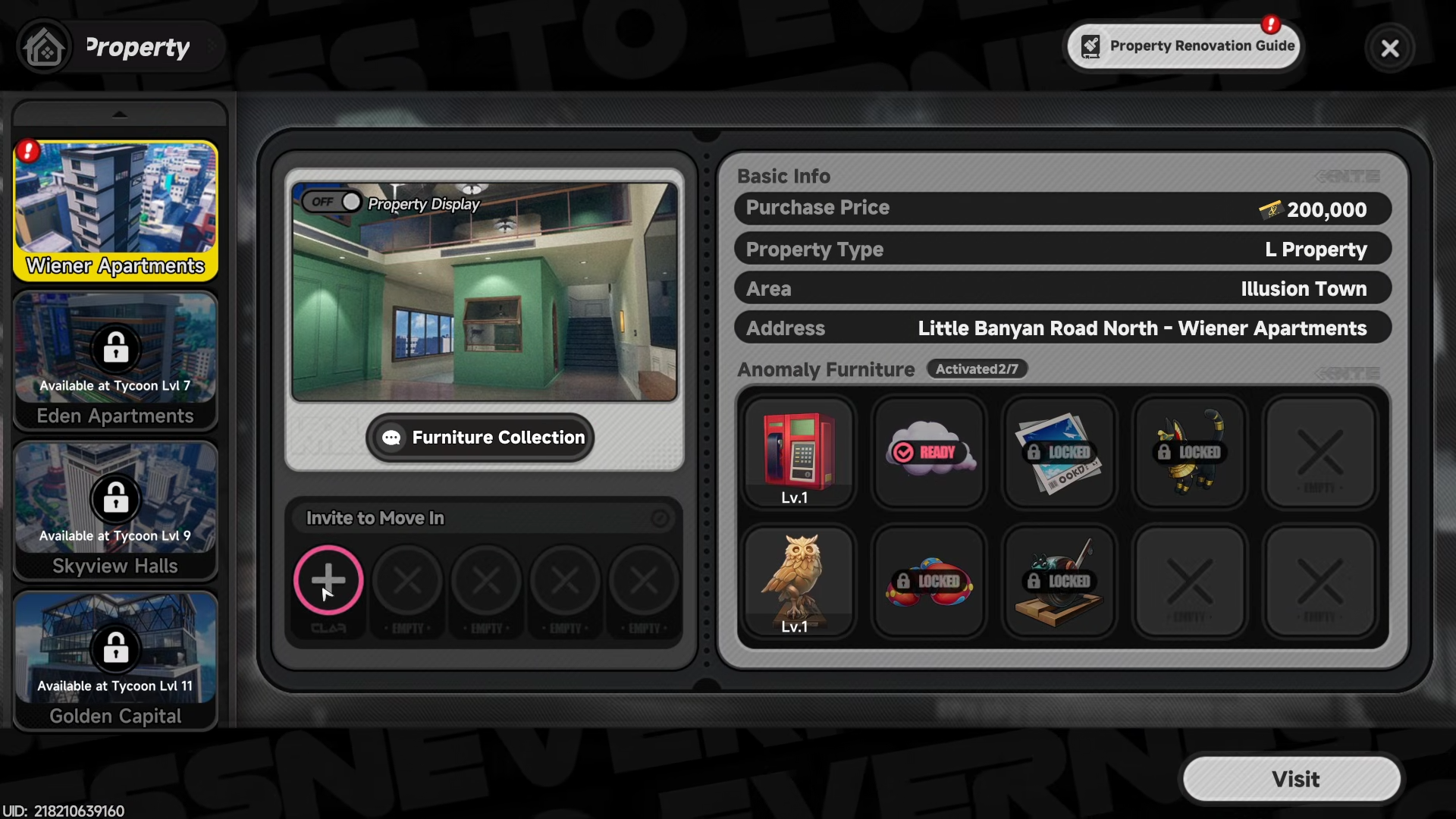 The apartment system is centered in Hethereau’s residential districts, typically near the main Downtown or Avon‑adjacent areas where early‑game apartments are sold. Once you accept the Tycoon‑related questline that points you toward the property‑purchase kiosk, the “Invite any character once” task appears in the side‑quest log under the same category (Tycoon / Housing).