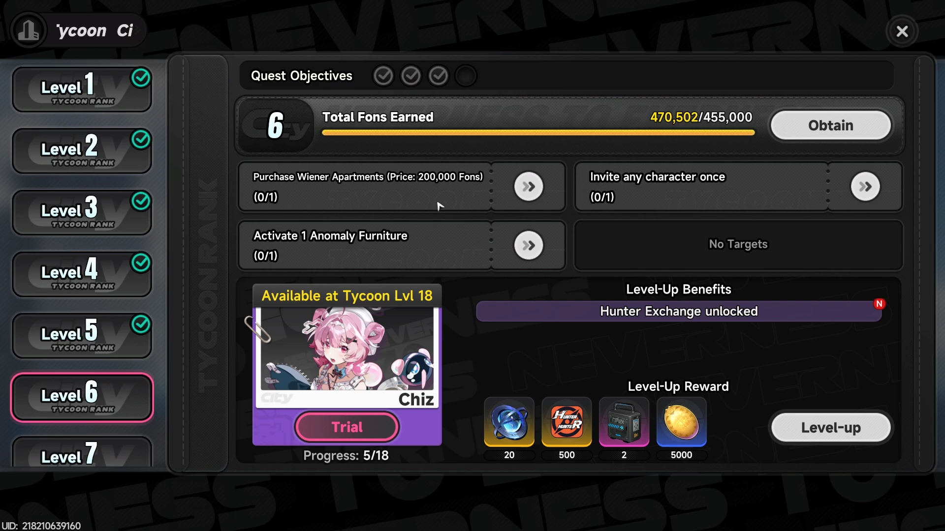 Reaching rank 5 is not just about time‑gated tasks; it requires accumulating a specific Fons total. The City Tycoon level‑up requirement for rank 5 is a cumulative Fons income threshold, which you cover by running shops, completing quests, and managing your City Tycoon activities. If you are short of the needed amount, focus on: